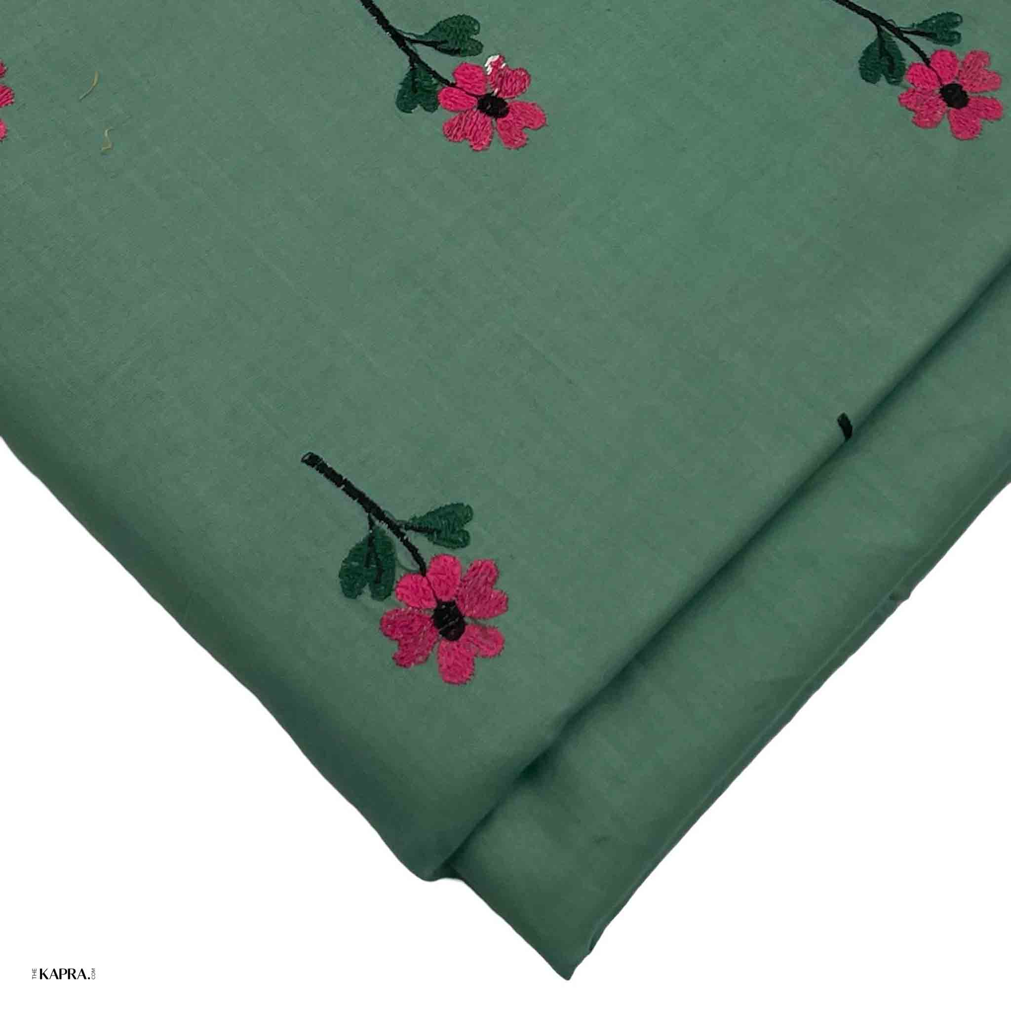 Premium quality embroidery on lawn fabric, which is then dyed to ensure print and fabric are of 100% match in colour. This fabric is an affordable luxury at this price.