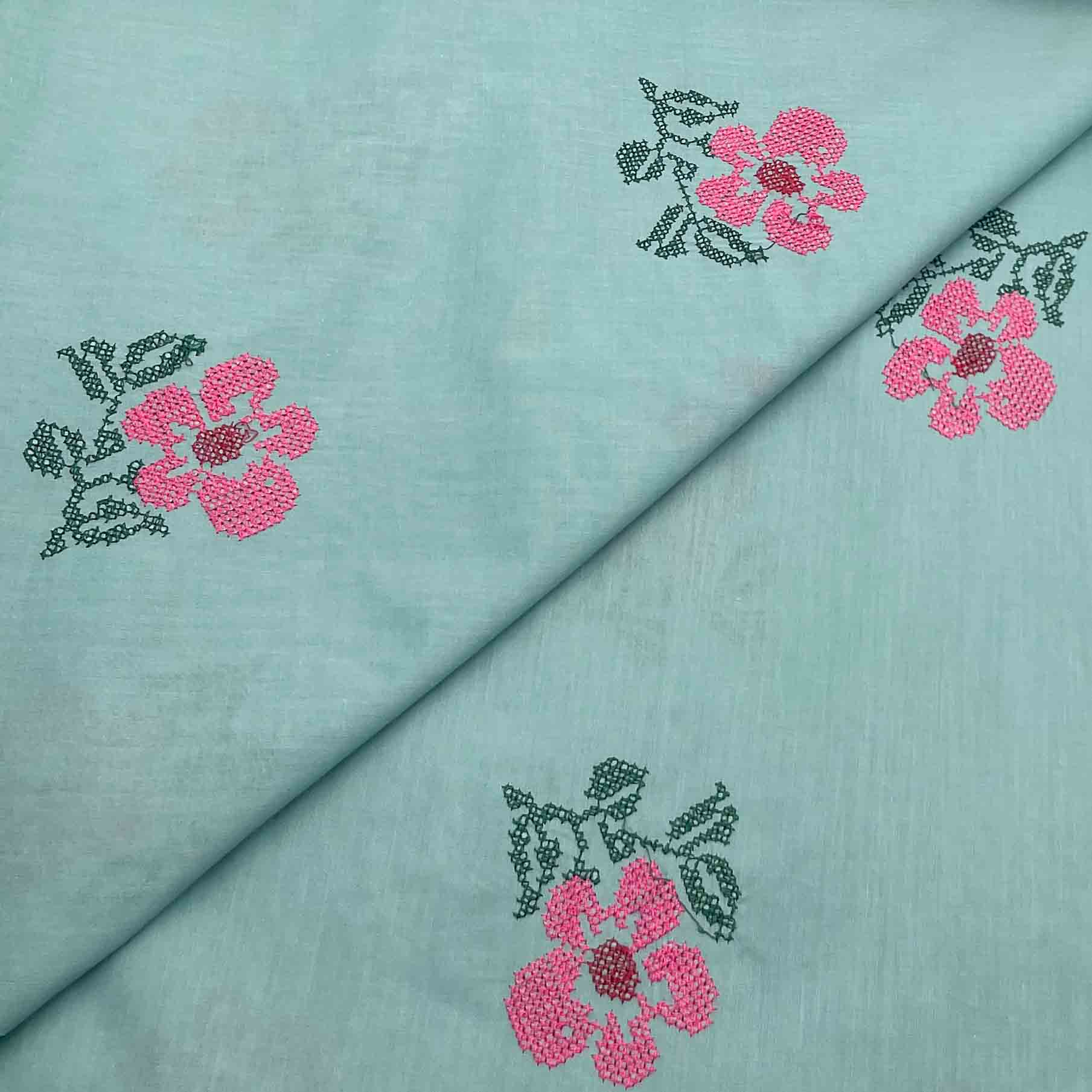 Multihead embrioidery on pure thick cotton fabric. This all over pattern is suitable for all your all season designing needs.